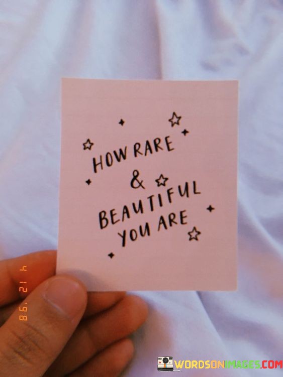 Ultimately, this quote serves as a reminder to appreciate and value the exceptional qualities that make each person special. It encourages recognizing the inherent worth and unique contributions of individuals, reinforcing the idea that the world is enriched by the diverse tapestry of rare and beautiful souls.