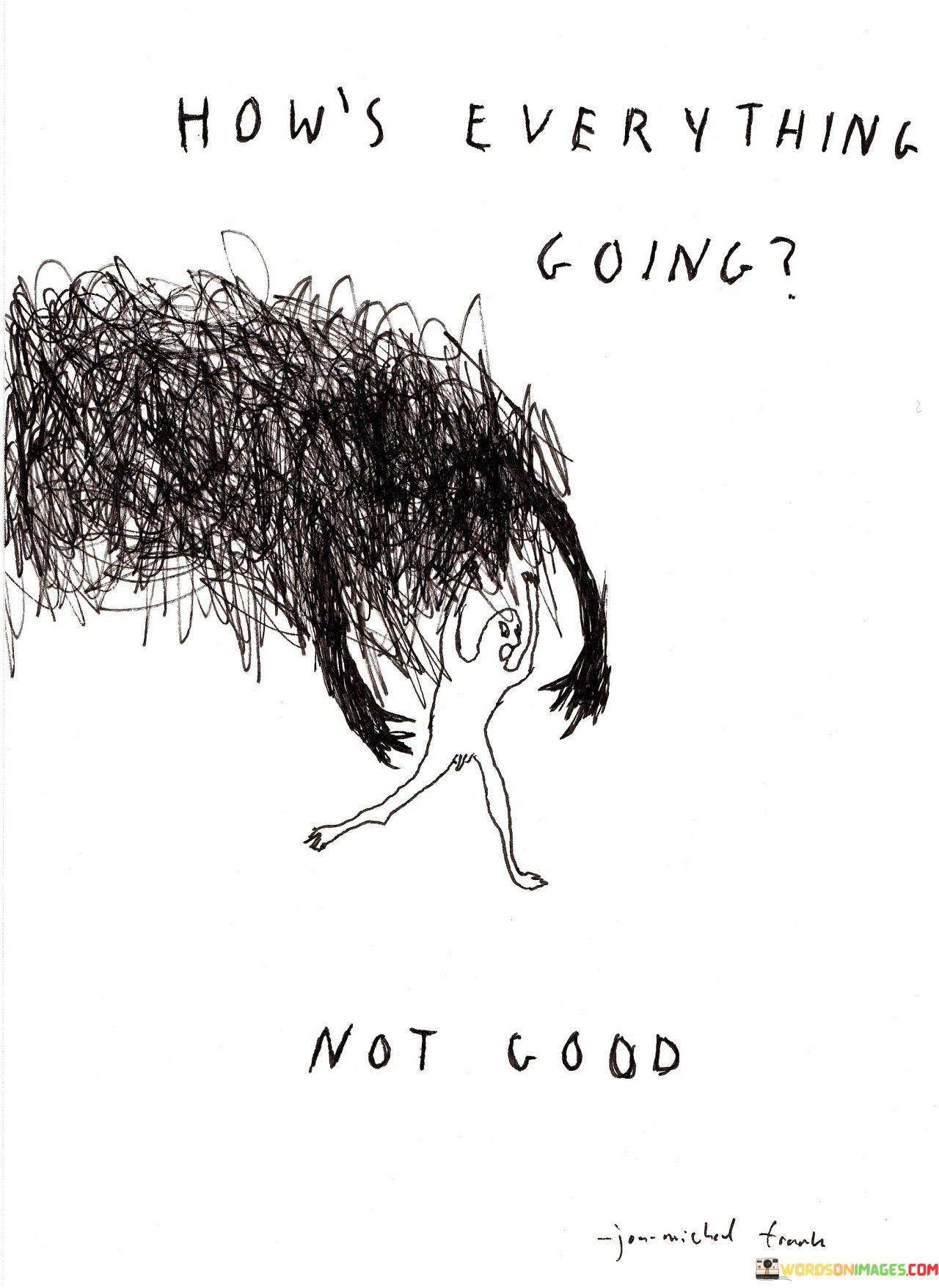 In summary, this phrase captures a brief but impactful exchange where the speaker inquires about someone's well-being and receives a straightforward response indicating that things are not going well. It highlights the importance of showing empathy and support when someone is going through a challenging period in their life.