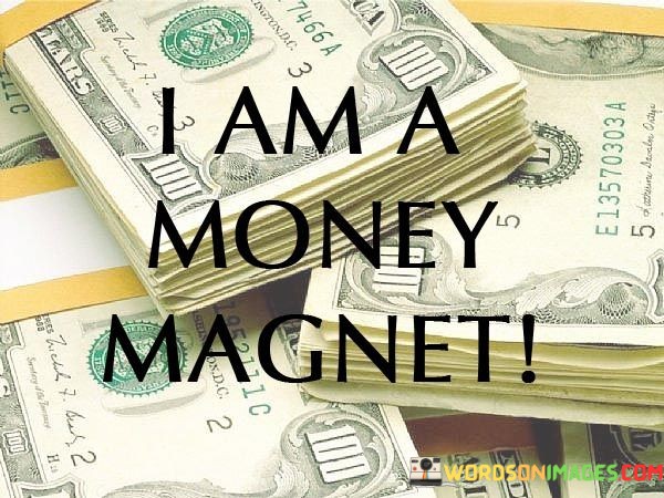 This quote carries a powerful message about the law of attraction and our relationship with money. When you affirm, "I am a money magnet," you are expressing a positive belief in your ability to attract financial abundance into your life.