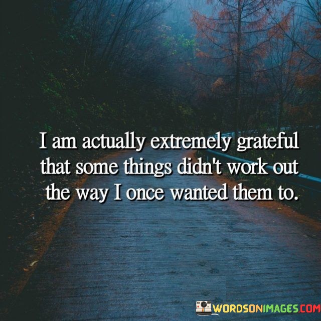 "I Am Actually Extremely Grateful That Some Things Didn't Work Out the Way I Once Wanted Them To" conveys profound appreciation for life's twists and turns. The quote suggests that failed desires can lead to unforeseen blessings. It emphasizes the transformative power of accepting detours and finding gratitude in life's unexpected outcomes.