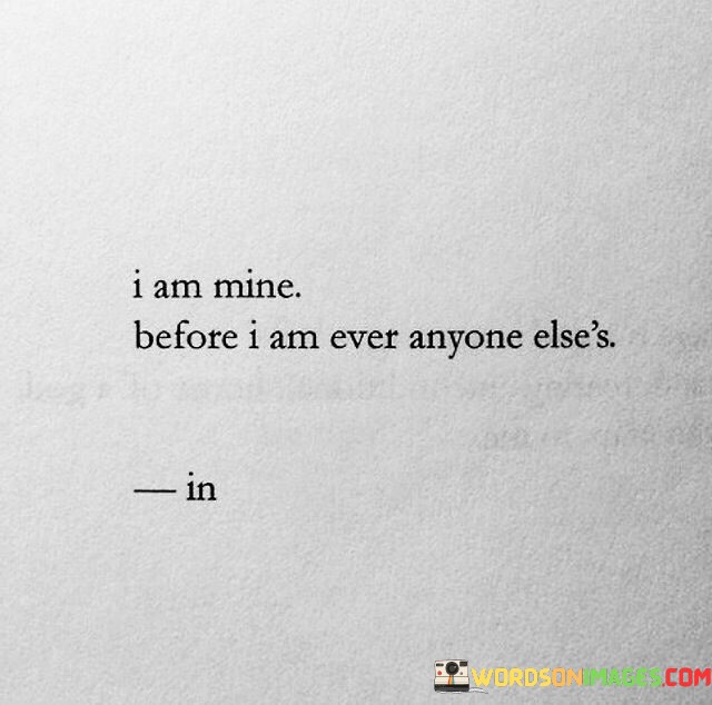 "I Am Mine Before I Am Ever Anyone Else's" - This poignant quote encapsulates a profound message about selfhood and self-care. At its core, it emphasizes the importance of prioritizing one's own well-being and identity before extending oneself to others. In a world often driven by external expectations and relationships, this statement serves as a reminder to honor and nurture the most fundamental relationship we have—with ourselves.