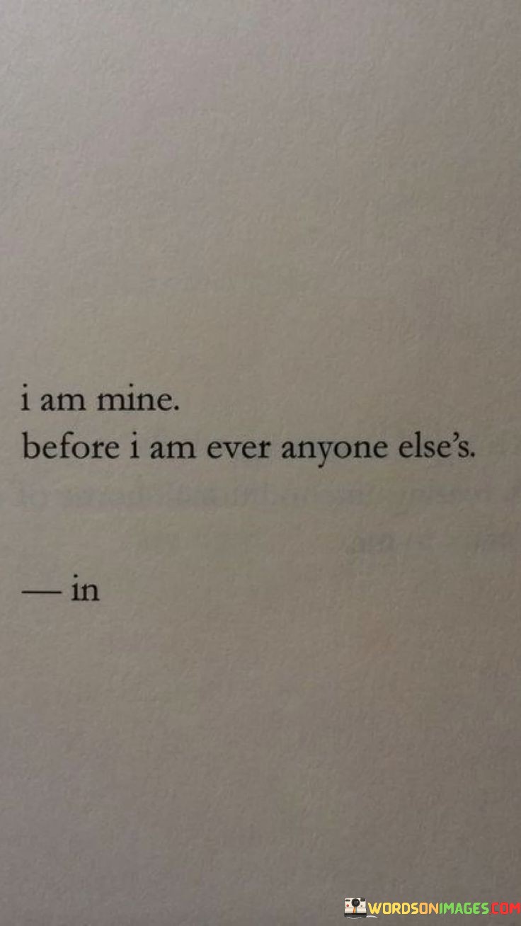 I exist as my own person before I belong to anyone else. This means recognizing my individuality and valuing my own needs and desires. I come first in understanding my self-worth and taking care of my well-being. This quote reminds me to prioritize myself and my identity before considering the expectations or opinions of others.