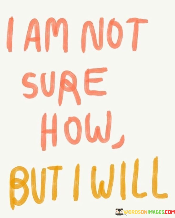 "I am not sure how but I will" encapsulates the essence of problem-solving and growth. It's a testament to the human spirit's ability to overcome obstacles and make progress, even in the face of uncertainty. This quote inspires us to take action, even when the road ahead is unclear, and to believe in our capacity to find a way.