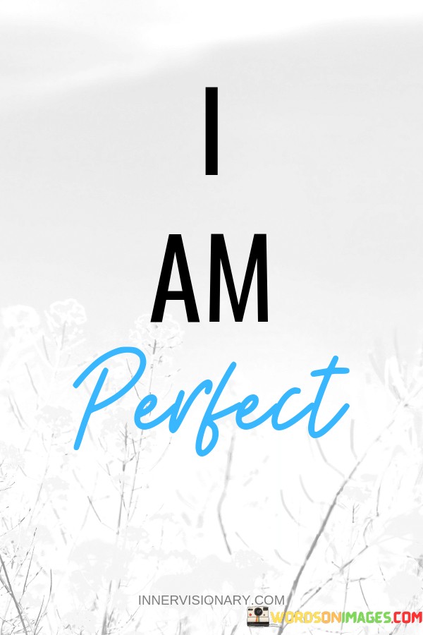 Moreover, this quote invites us to break free from the relentless pursuit of external validation and societal standards of perfection. Instead, it encourages us to find contentment within ourselves and embrace our authentic selves wholeheartedly. In essence, "I am perfect" is a powerful affirmation of self-worth, reminding us that we are enough just as we are.