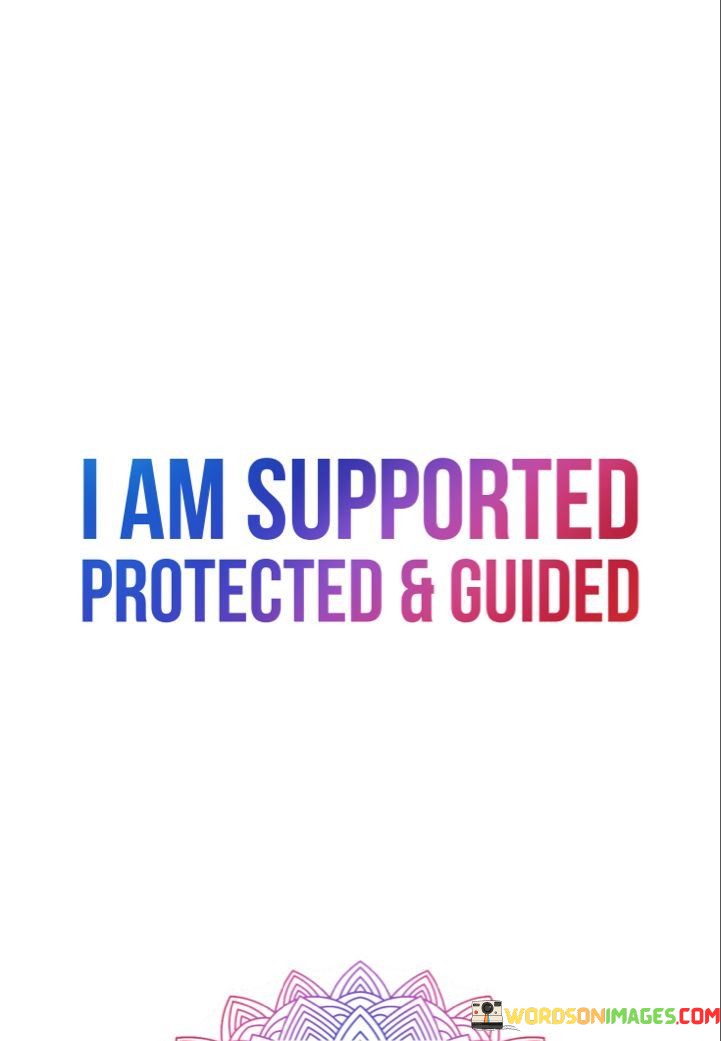 Feeling supported means I have a safety net, like a trapeze artist with a strong catch below. It's the knowledge that there are people who care about my well-being and are there to lend a hand when I need it.