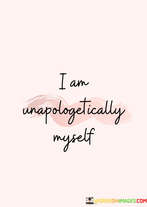 This quote, "I Am Unapologetically Myself," means that the person is not sorry for being exactly who they are. They don't feel the need to apologize or make excuses for their true self. Instead, they embrace their individuality and uniqueness without any regrets.