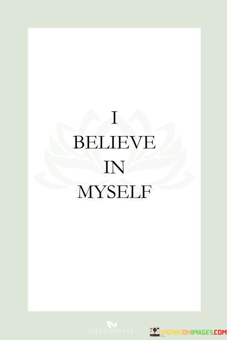 Believing in oneself means having confidence and trust in your own abilities and judgment. It's like being your own biggest supporter. When you believe in yourself, you have a positive outlook on your capabilities and are more likely to take on challenges and pursue your goals.