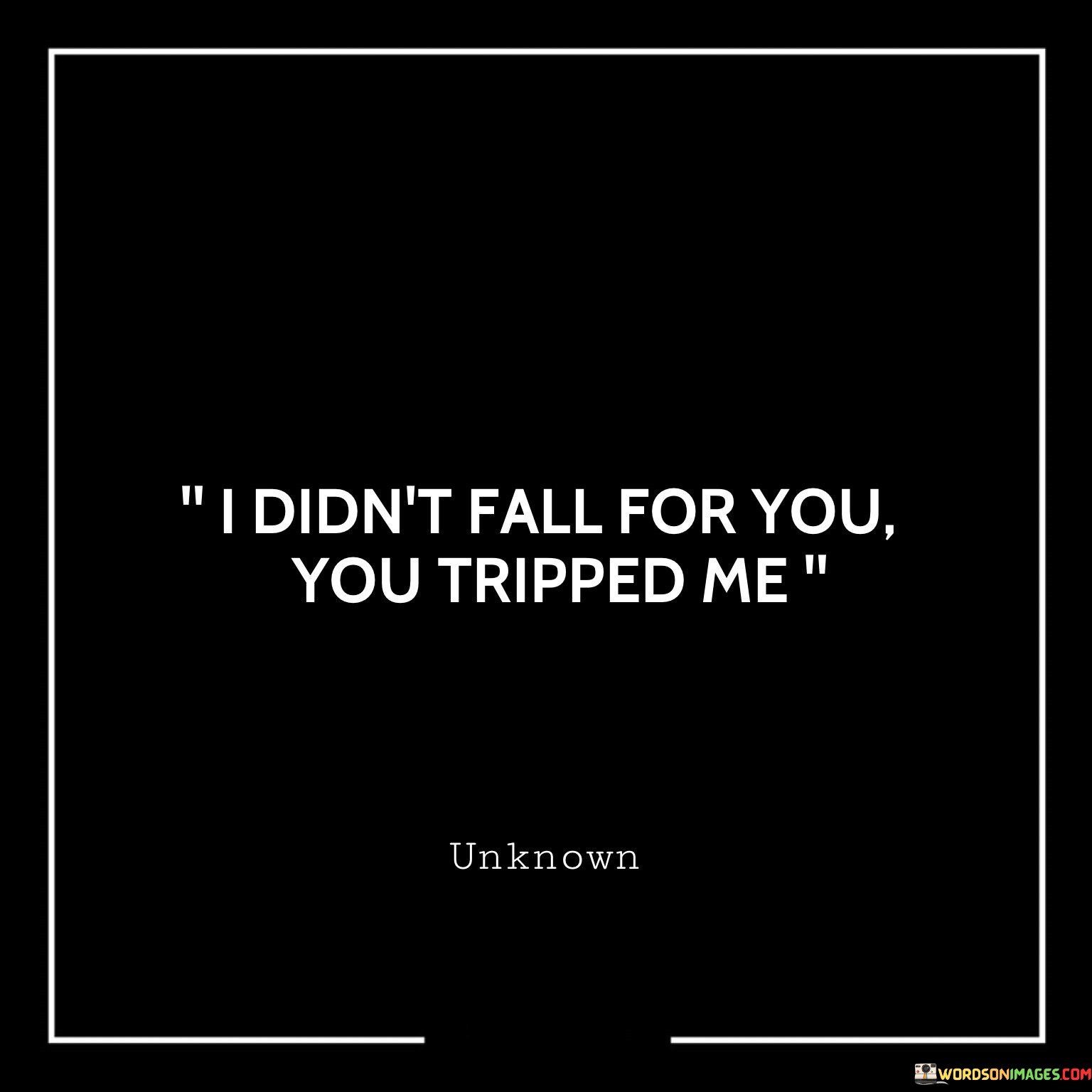 It wasn't a deliberate choice; instead, it happened unexpectedly. The quote playfully suggests that the feeling of falling for someone was not a conscious decision but a result of unforeseen circumstances. The metaphor of tripping implies that emotions took over, causing an unplanned attraction.