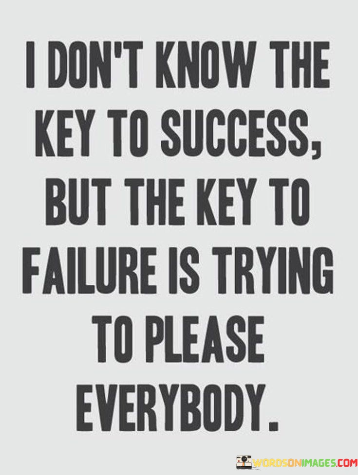 The quote "I Don't Know The Key To Success But The Key To Failure is trying to please everybody" conveys profound wisdom about priorities and decision-making. It highlights the complexity of success while emphasizing a clear pitfall – attempting to appease everyone.