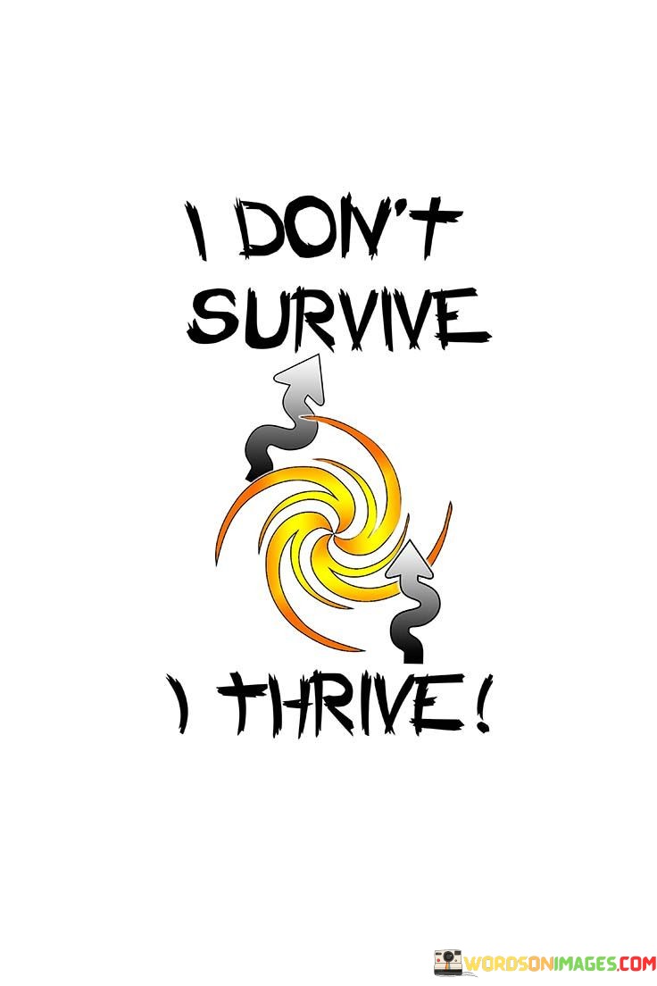 This quote means more than just getting by; it's about flourishing and excelling. When someone says, "I don't survive, I thrive," they're expressing their desire to do more than just exist—they want to live life to the fullest.