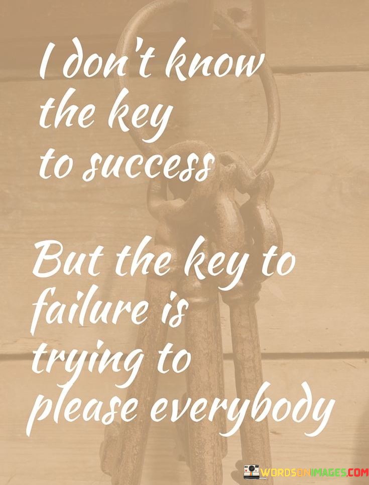 In the third paragraph, the phrase signifies the importance of authenticity. It encourages individuals to prioritize their own values and goals rather than seeking external validation. This phrase ultimately underscores the idea that success is better pursued by remaining true to oneself, rather than attempting to please a diverse range of opinions.