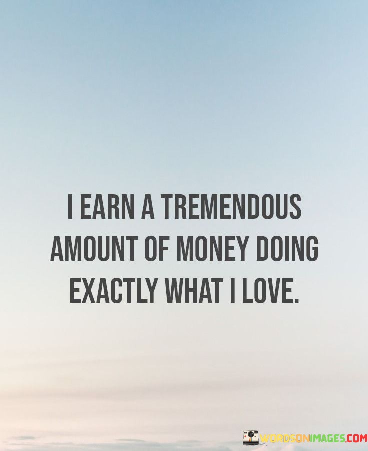 I'm lucky to earn big while loving my job. Passion turns into profit. Doing what I love puts money in my pocket. Every day, I do what I'm passionate about, and it brings financial success. It's a dream come true—to make a living by doing what I'm enthusiastic about.
