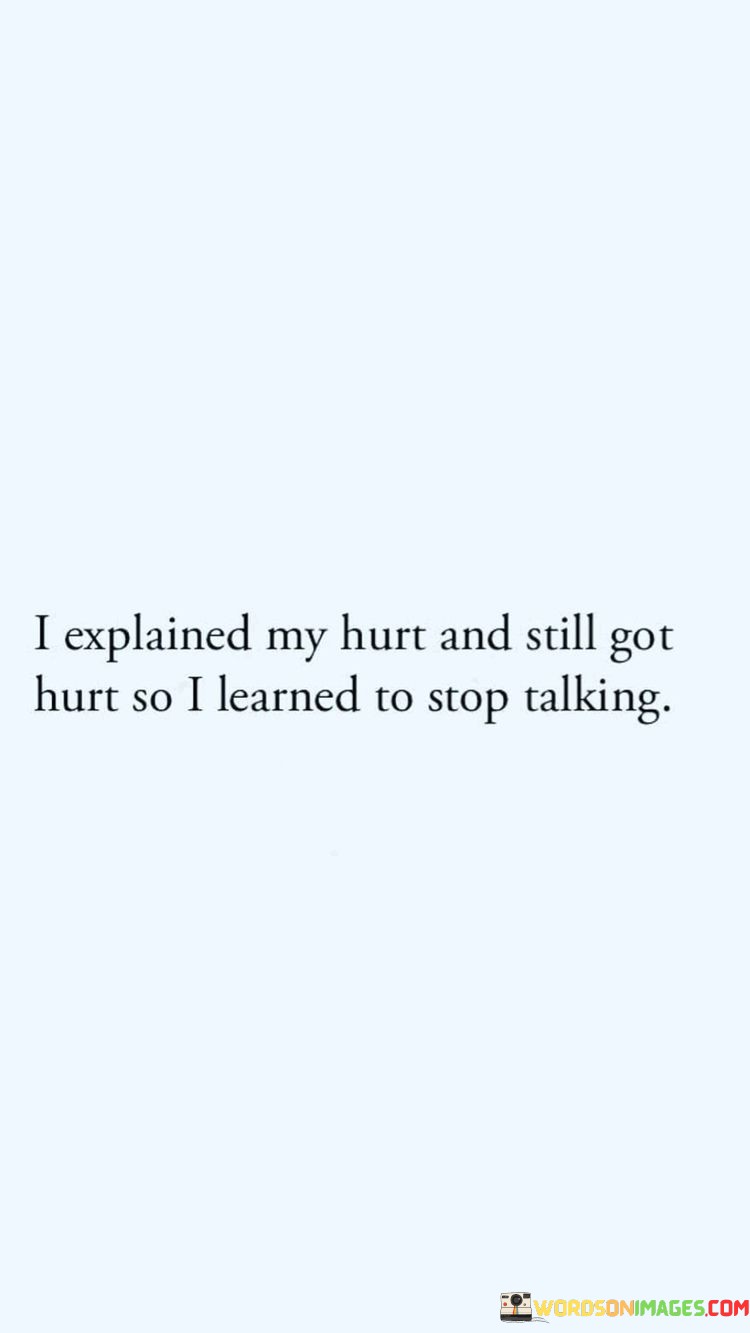 In this quote, the person is saying that they tried to express their feelings of pain or sadness to others, but instead of getting support or understanding, they were hurt even more. It's like when you have an ouchie and you tell someone, but they accidentally poke your ouchie, making it hurt more. So, this person realized that talking about their hurt wasn't helping, and it was causing them more pain.