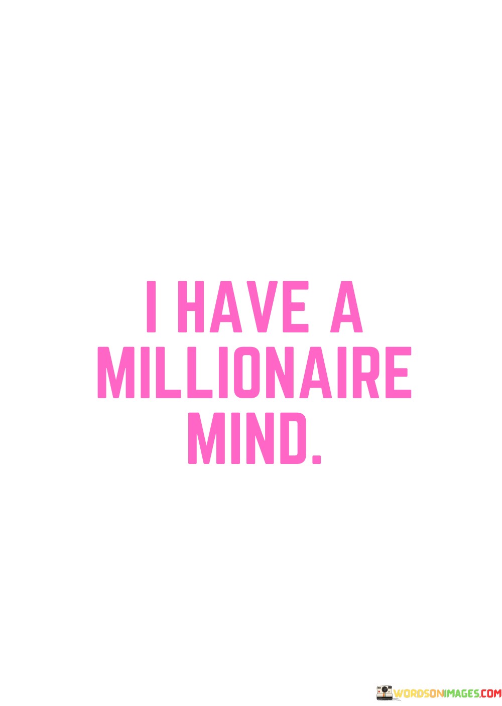 Having a millionaire mindset doesn't just mean thinking about money. It's about having a positive attitude towards life and embracing challenges. I value learning, innovation, and wise decision-making. By thinking like a millionaire, I aim for a life of fulfillment, achievement, and making a positive impact on my journey.