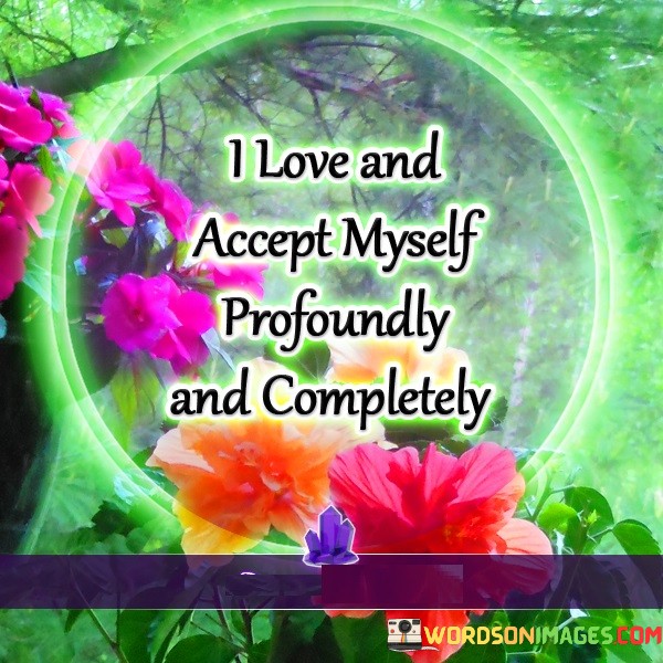 The quote is a declaration of self-love and self-acceptance. The phrase "I love and accept myself profoundly" emphasizes a deep and unconditional affection for oneself.