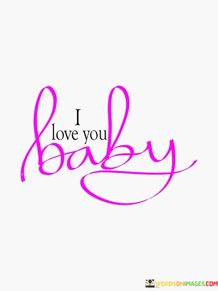 This quote is a simple and heartfelt expression of affection. When someone says, "I love you, baby," they are letting another person know that they have strong feelings of love and care for them. It's a way of expressing a deep emotional connection.