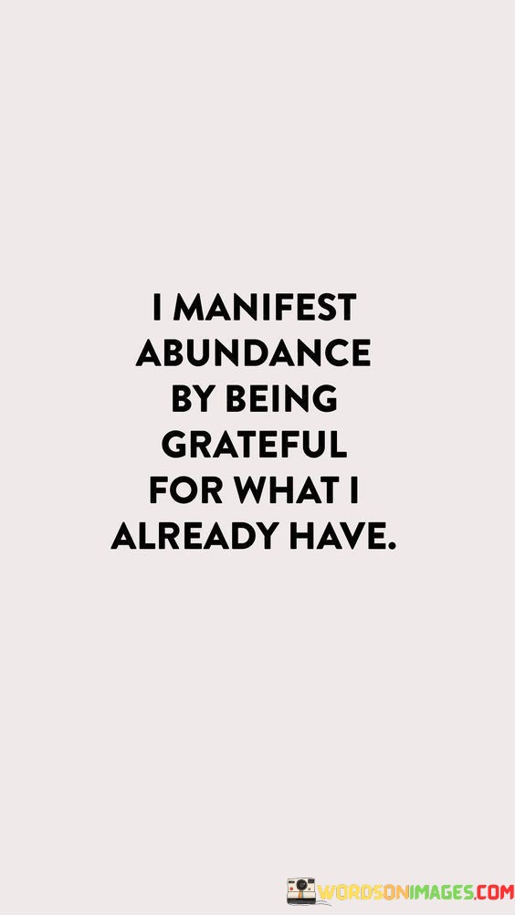 I attract plenty into my life by appreciating what I presently possess. This quote symbolizes that acknowledging my current blessings brings more positivity my way. It's like nurturing a garden – tending to the existing plants yields a richer harvest.