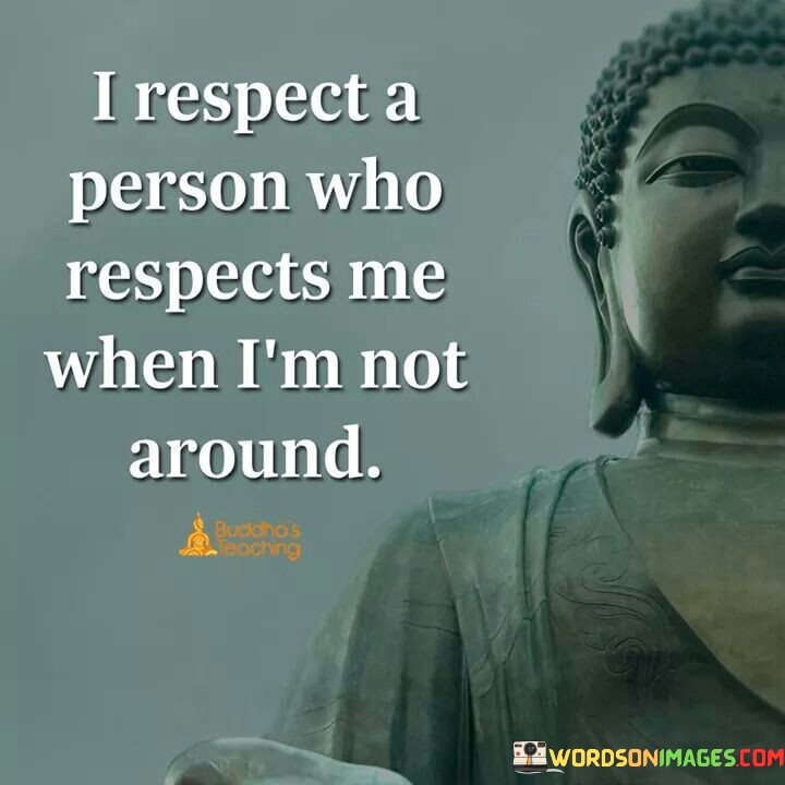 This quote highlights genuine respect, even in absence. "Respects me when I'm not around" reflects consistent behavior. By valuing respect in all circumstances, a person's character shines through, fostering trust and a positive connection based on mutual regard.