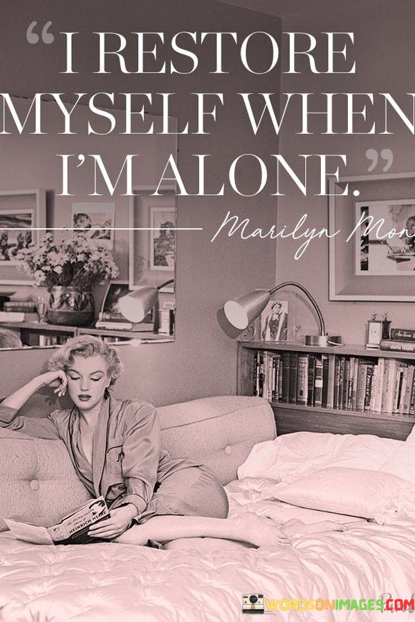 The phrase "I restore myself when I'm alone" speaks to the importance of solitude and self-reflection for personal rejuvenation. It suggests that the individual finds solace and inner peace when they are in a solitary state. Being alone allows them the space and time to recharge emotionally, mentally, and spiritually, away from the distractions and pressures of the outside world.