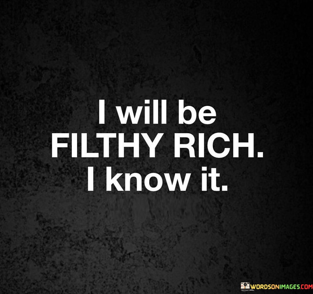 It signifies a resolute mindset and a bold declaration of one's ambitions. The quote implies that the speaker is not just hoping for wealth but is convinced that it will become a reality. It's as if they have set a firm goal and are determined to work tirelessly to attain immense wealth.