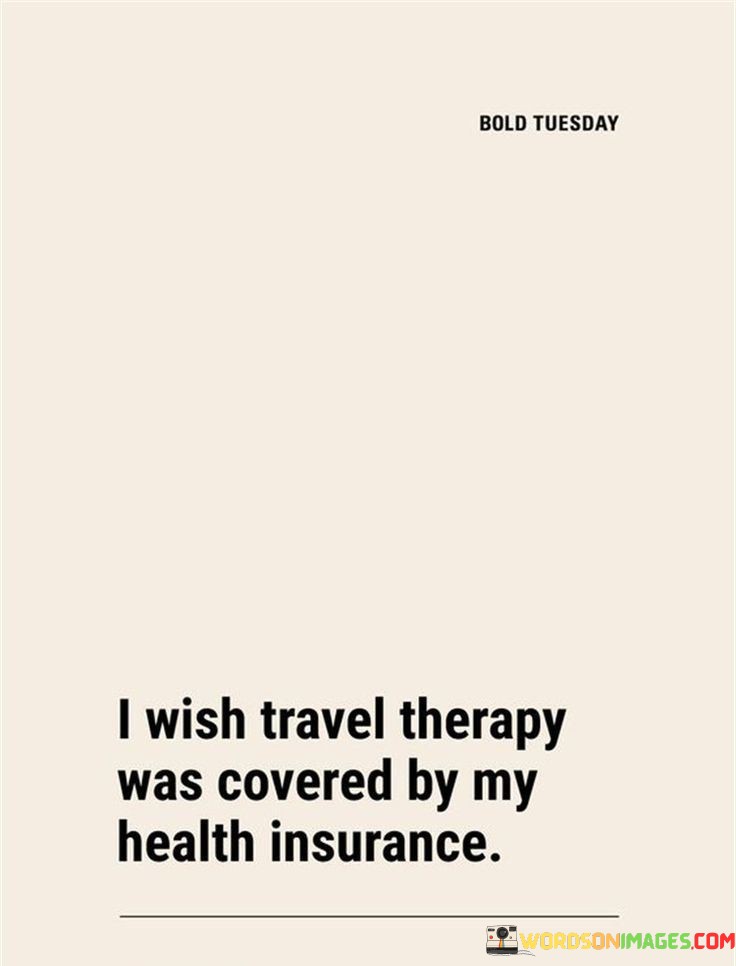 If only my health insurance included travel therapy. Imagine if exploring new places and cultures could contribute to our well-being. Travel becomes a form of healing, a remedy for the soul, and an escape from life's stressors.
