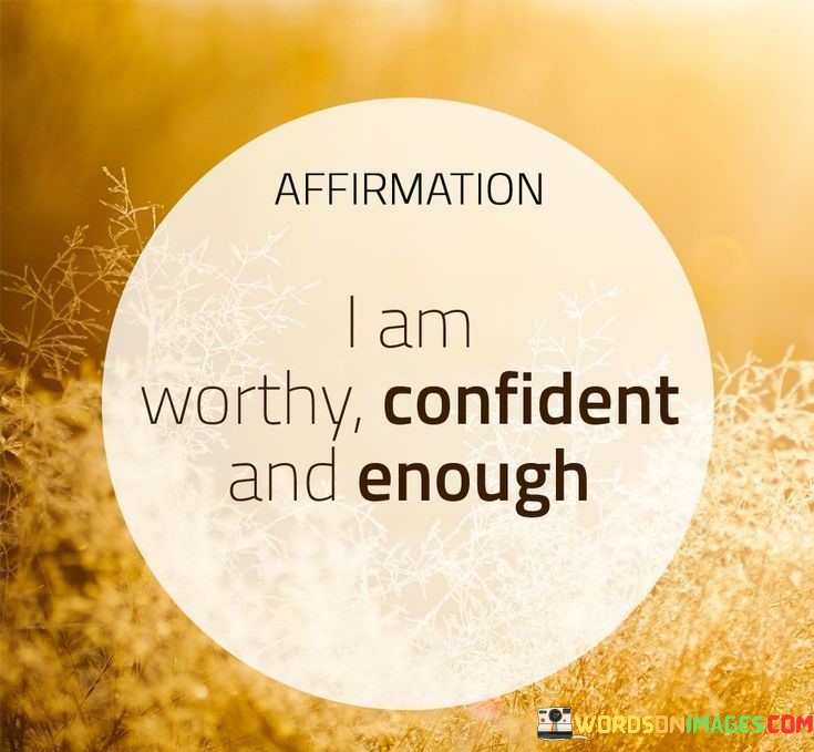 The statement "confident and enough" reinforces self-assurance. It signifies a positive self-image and contentment with oneself, combating feelings of inadequacy.