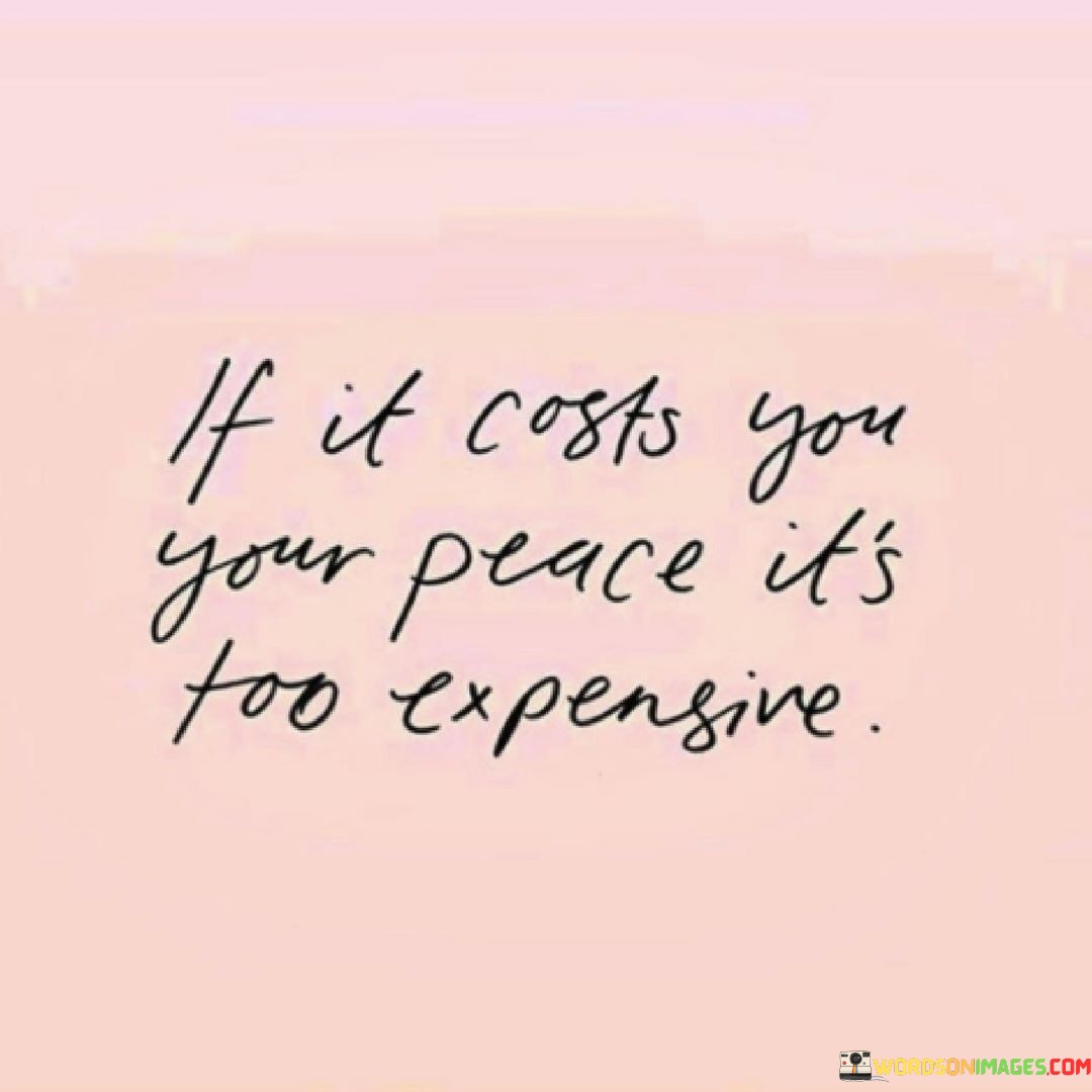 In a world that often equates success with material wealth and external achievements, the profound simplicity of the statement, "If it costs you your peace, it's too expensive," resonates like a gentle yet powerful reminder. These words encapsulate a timeless wisdom that urges us to reevaluate our priorities and choices. At its core, this quote underscores the immeasurable value of inner tranquility and emotional well-being.