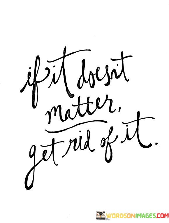 Simplify your life. Toss the unimportant stuff. This means, if something doesn't make your life better or happier, say goodbye. Don't waste time on trivial things. Declutter your space and mind. Focus on what truly matters. Your life will feel lighter.