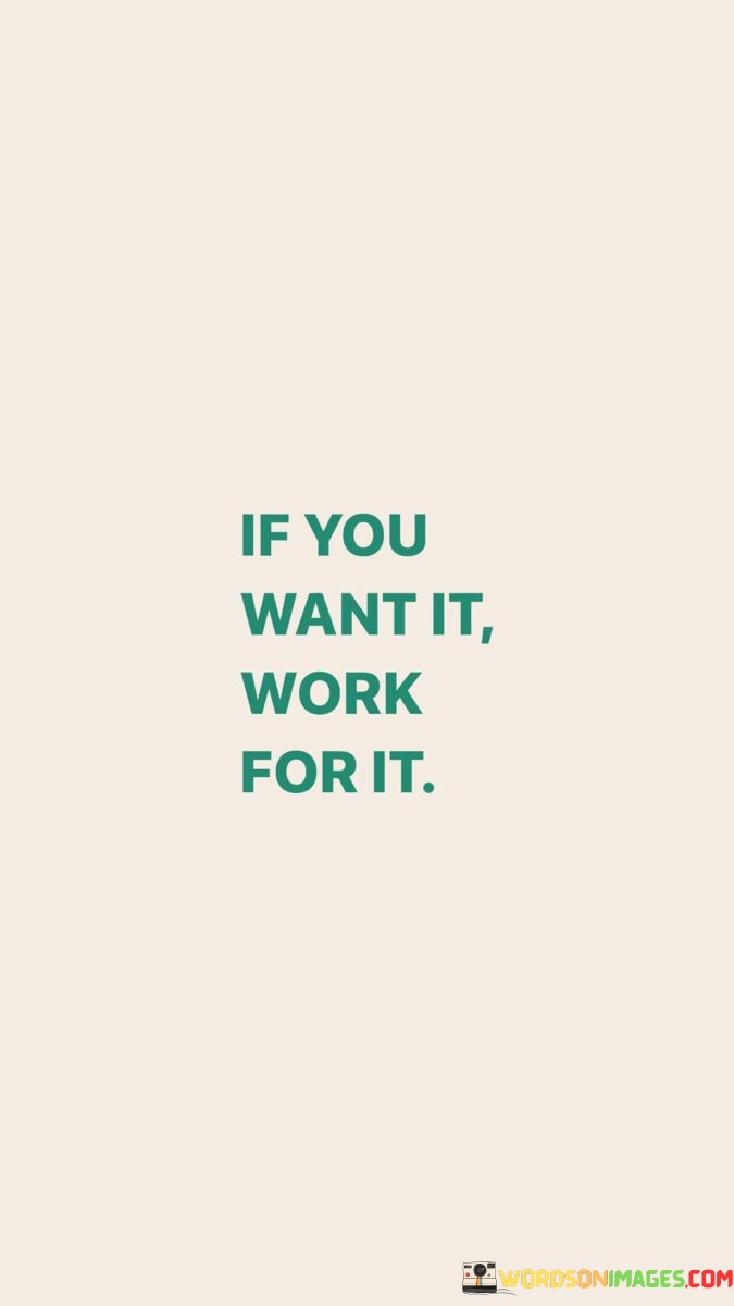 Achieving your desire demands effort on your part. This quote emphasizes the correlation between aspiration and hard work. It suggests that if there's something you wish to attain, it won't simply come to you; you need to actively put in the effort to make it happen.