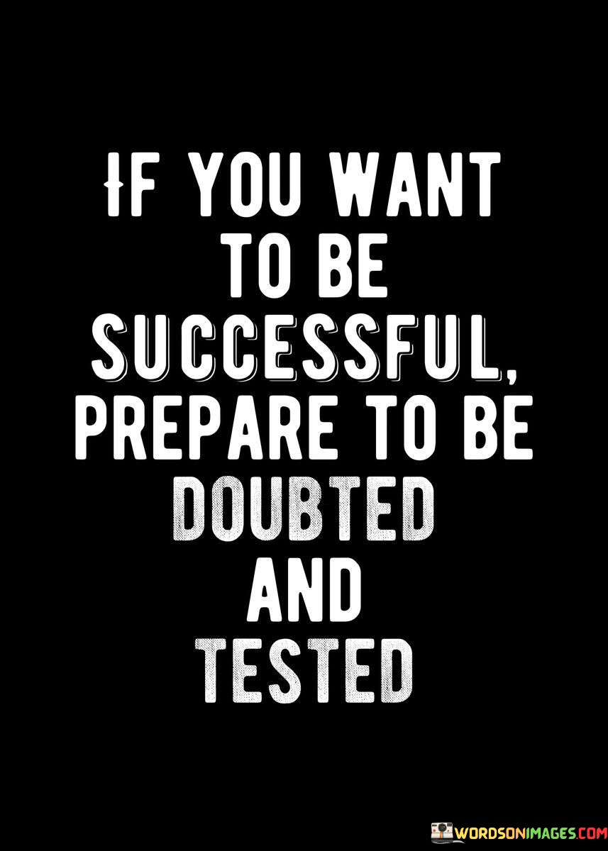 The statement "If you want to be successful, prepare to be doubted and tested" succinctly conveys the challenges that often accompany the pursuit of success.