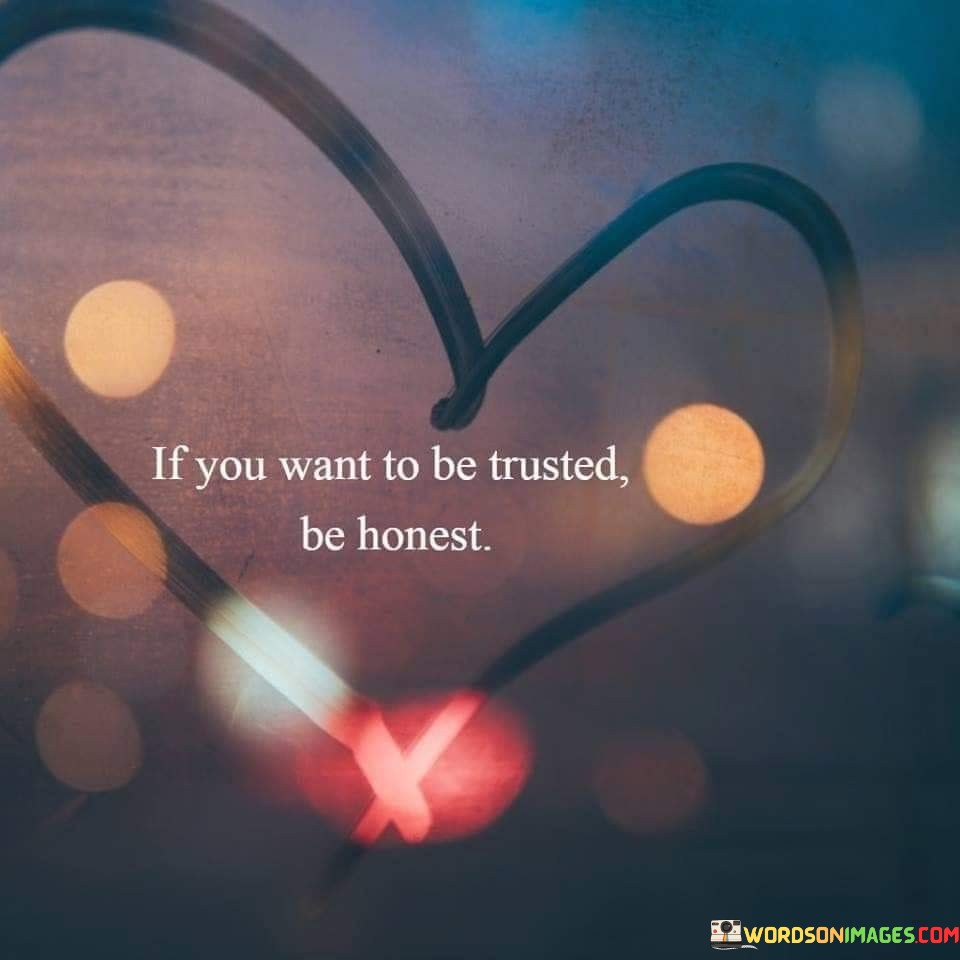 Trust is a result of honesty in actions and words. The quote reflects the idea that when you demonstrate honesty, people rely on your intentions. It’s a reminder that trust isn't given freely but earned through sincere honesty.