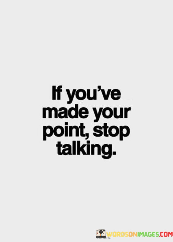 In simple terms, this quote teaches us the importance of being concise and effective in our communication. It's like a traffic sign that tells you when to stop talking once you've reached your destination, so your message remains clear and meaningful.
