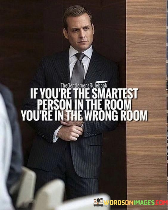 This quote advises us to seek environments where we can continue learning and growing. If you find yourself as the most knowledgeable person in a room, it suggests you might not be in a place where you can expand your understanding. It's similar to choosing a book; you want to pick one that challenges you and adds to your knowledge.