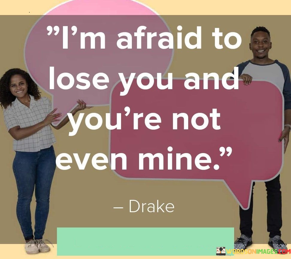 The thought of you slipping away troubles me, even though we lack a formal relationship. The fear of losing something undefined but precious can be overwhelming. This quote illustrates how emotions can be powerful, even when there isn't a traditional claim. The fear of losing you, even if you're not bound to me, echoes the depth of my feelings.