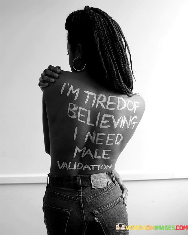 It signifies a desire for personal empowerment and self-sufficiency. The speaker is weary of feeling dependent on males for validation or support, suggesting a longing to stand strong on their own two feet. This sentiment encourages individuals to believe in their abilities and not rely on gender stereotypes to define their worth.