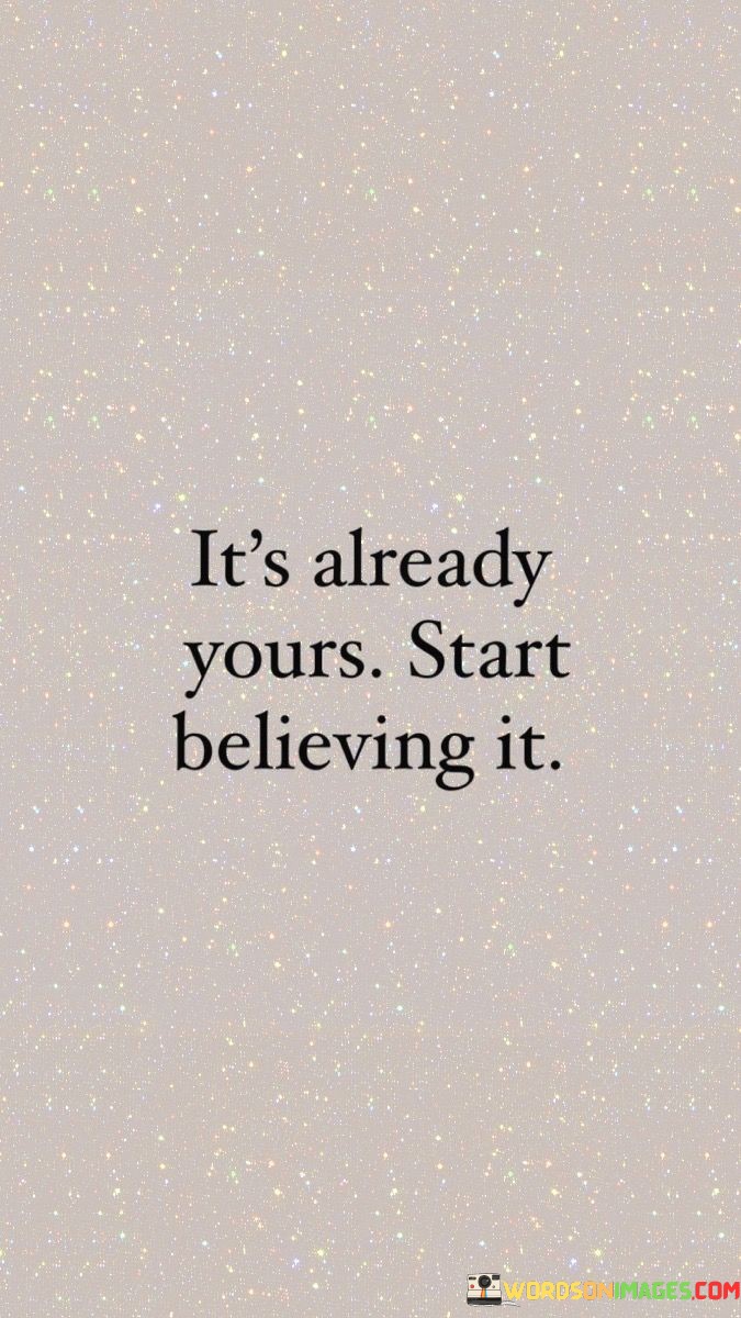 This quote is telling you that whatever you want in life, you should believe that it's already yours. In simpler terms, it means that if you have a goal or a dream, you should have strong faith in yourself and your abilities. Imagine it's already in your hands, and this belief will help you work towards it with more determination.