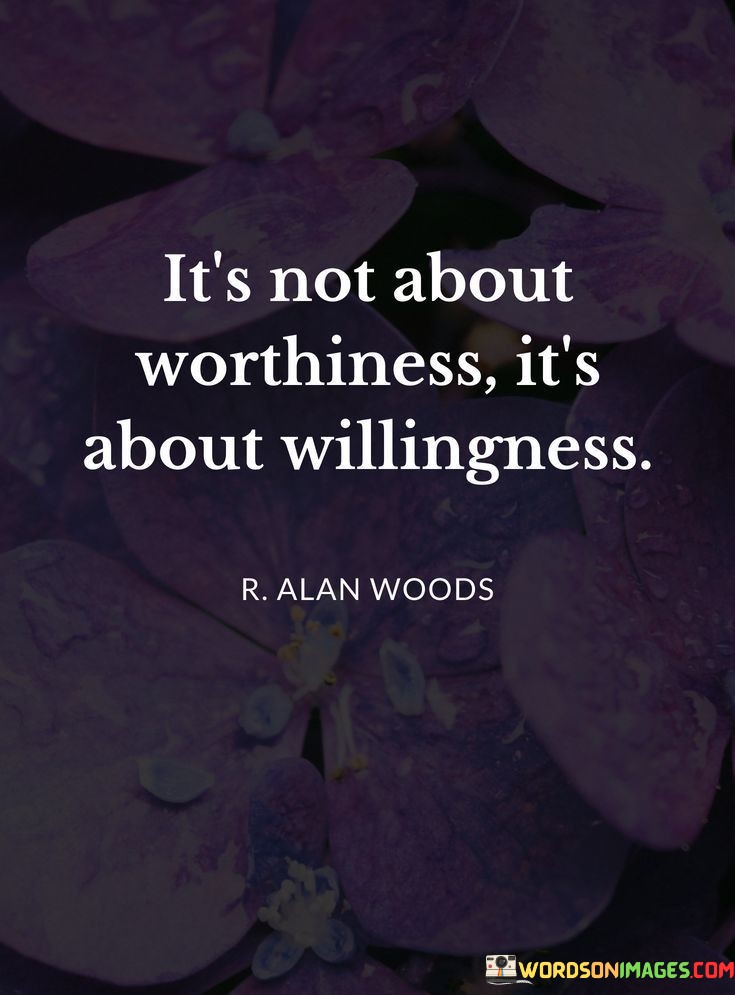 Imagine worthiness as a gatekeeper that sometimes holds us back. We might think we're not good enough or deserving of certain opportunities. However, this quote reminds us that it's our willingness to step forward, take risks, and put in effort that truly matters. It's like saying, "I may not be perfect, but I'm willing to learn and grow."