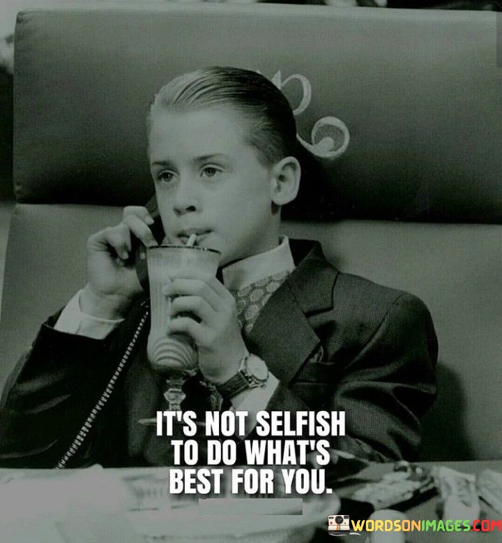By stating that doing what's best for oneself isn't selfish, the quote challenges societal misconceptions. It encourages people to disregard guilt often associated with self-care. This perspective shift empowers individuals to engage in actions that foster self-improvement and emotional resilience, ultimately enhancing their ability to positively engage with others.