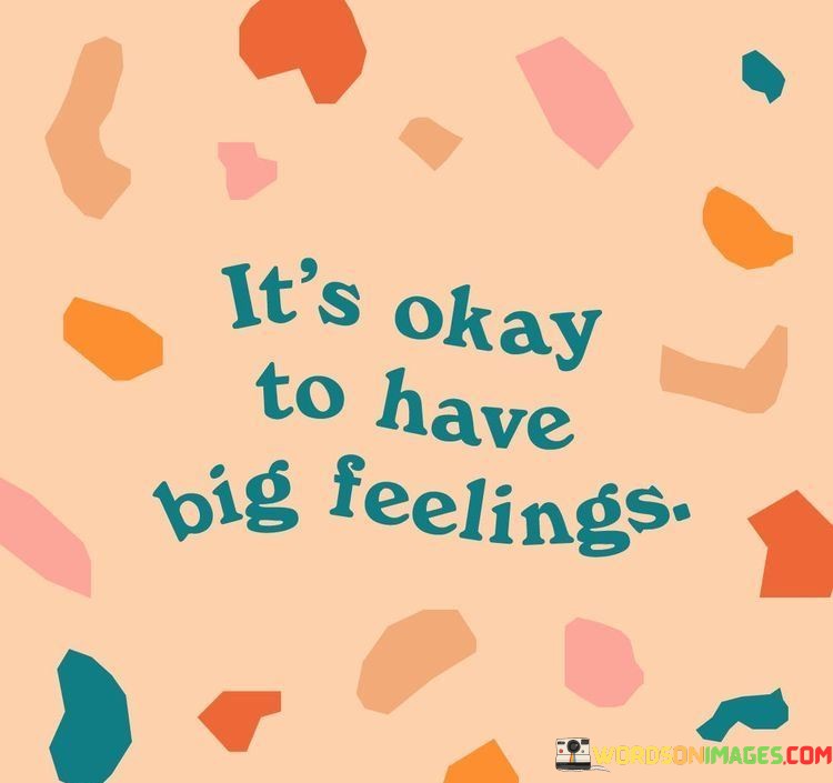 Having strong emotions is alright. This quote conveys the message that experiencing intense feelings is a natural and acceptable part of being human. It suggests that there's no need to suppress or downplay our emotions; instead, it's healthy to acknowledge and express them.
