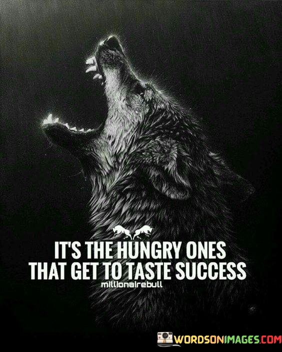 In summary, the statement conveys the message that a strong desire and determination to succeed are essential factors in reaching one's goals. It inspires individuals to channel their hunger for success into hard work and commitment, knowing that their efforts will lead to a taste of achievement.
