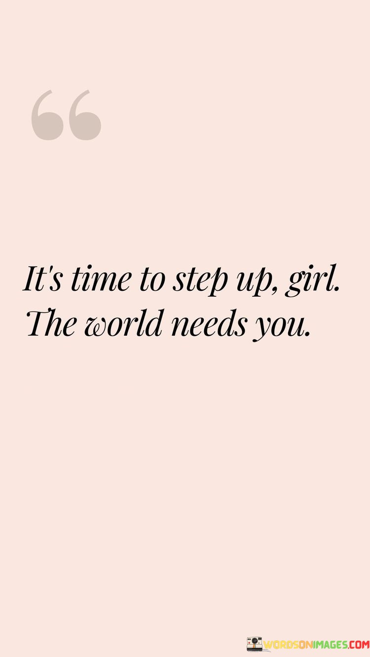 The moment has come for you to rise, girl. The world is calling for your strength and contributions. It's time to embrace your role and make a difference. Just like a puzzle needs every piece, the world needs you to step forward.