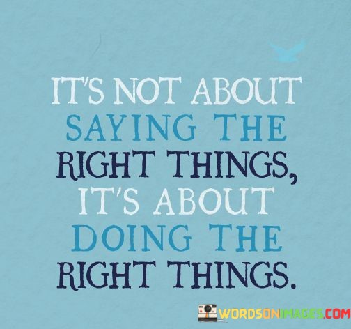 "It's not about saying the right things; it's about doing the right things." This quote reminds us that actions speak louder than words and that true character is revealed through our deeds, not just our words.