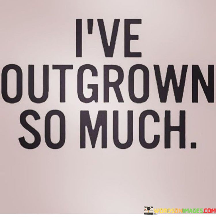 The quote "I've Outgrown So Much" signifies personal growth and development. It suggests that as individuals journey through life, they undergo significant changes and maturation. The phrase "outgrown" implies that one has moved beyond certain aspects of their past self or circumstances.