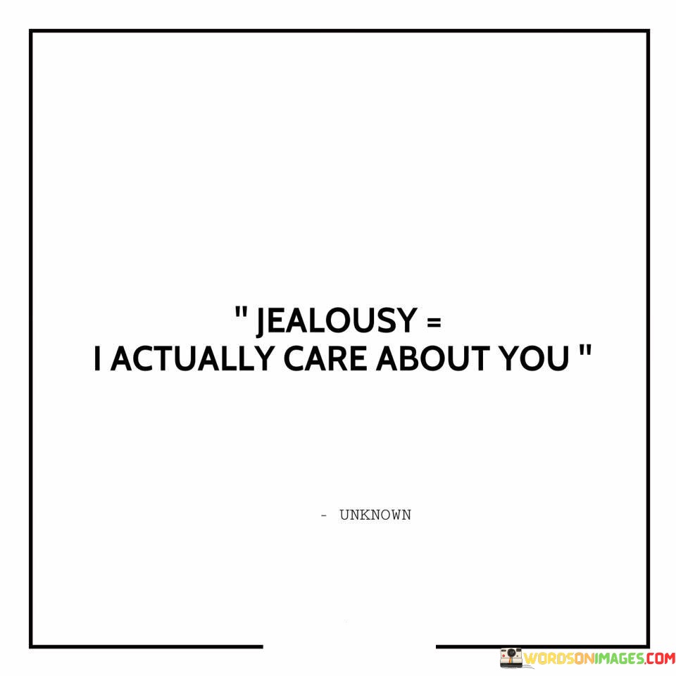 Jealousy comes from a place of genuine care. It's not about possession or control, but about wanting the best for you. Seeing you with others makes me realize how much you matter to me. This quote captures the idea that jealousy, in this context, is a reflection of the depth of my feelings and my sincere caring for you.