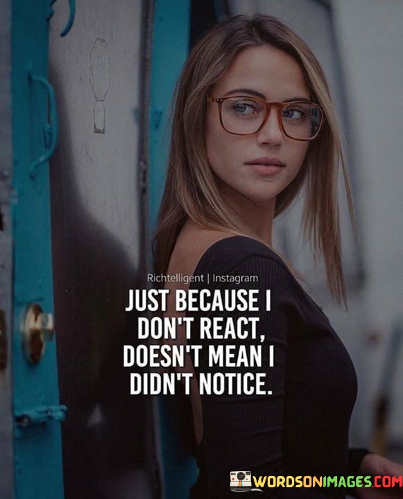 This quote highlights hidden awareness. It shows that not showing a reaction doesn't mean not perceiving. Silence doesn't imply ignorance. By understanding this, you recognize the power of observation and restraint in understanding others and situations.