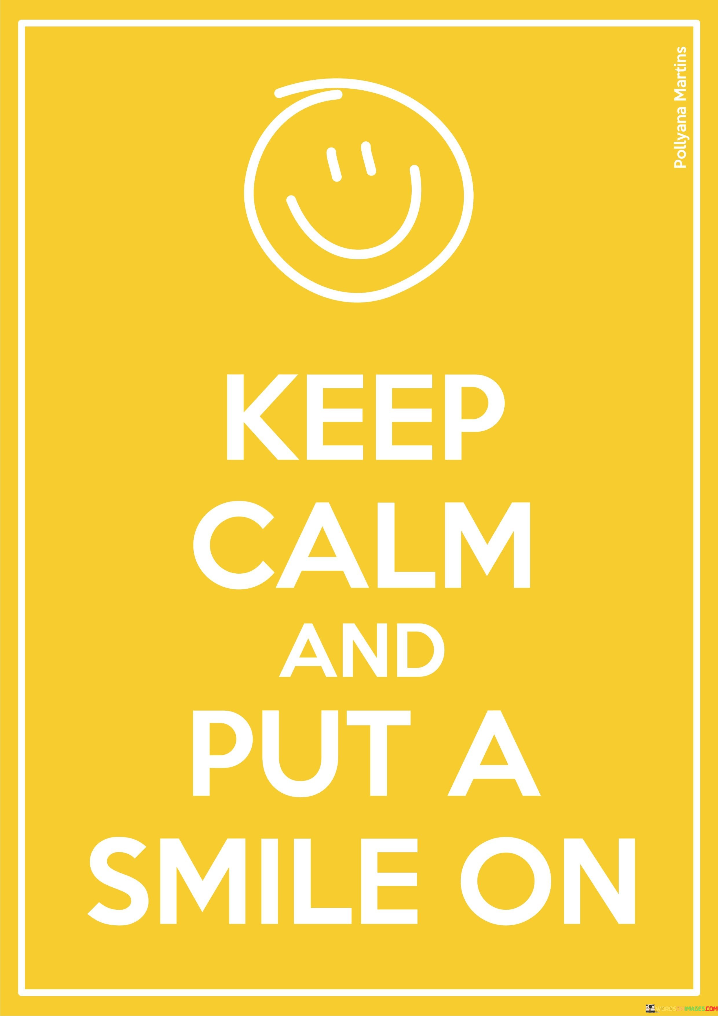 The quote encourages a balanced approach to life's ups and downs. It suggests that even though challenges might arise, we have the power to control our reactions. By staying calm and wearing a smile, we show resilience and a willingness to find joy even in the face of adversity.