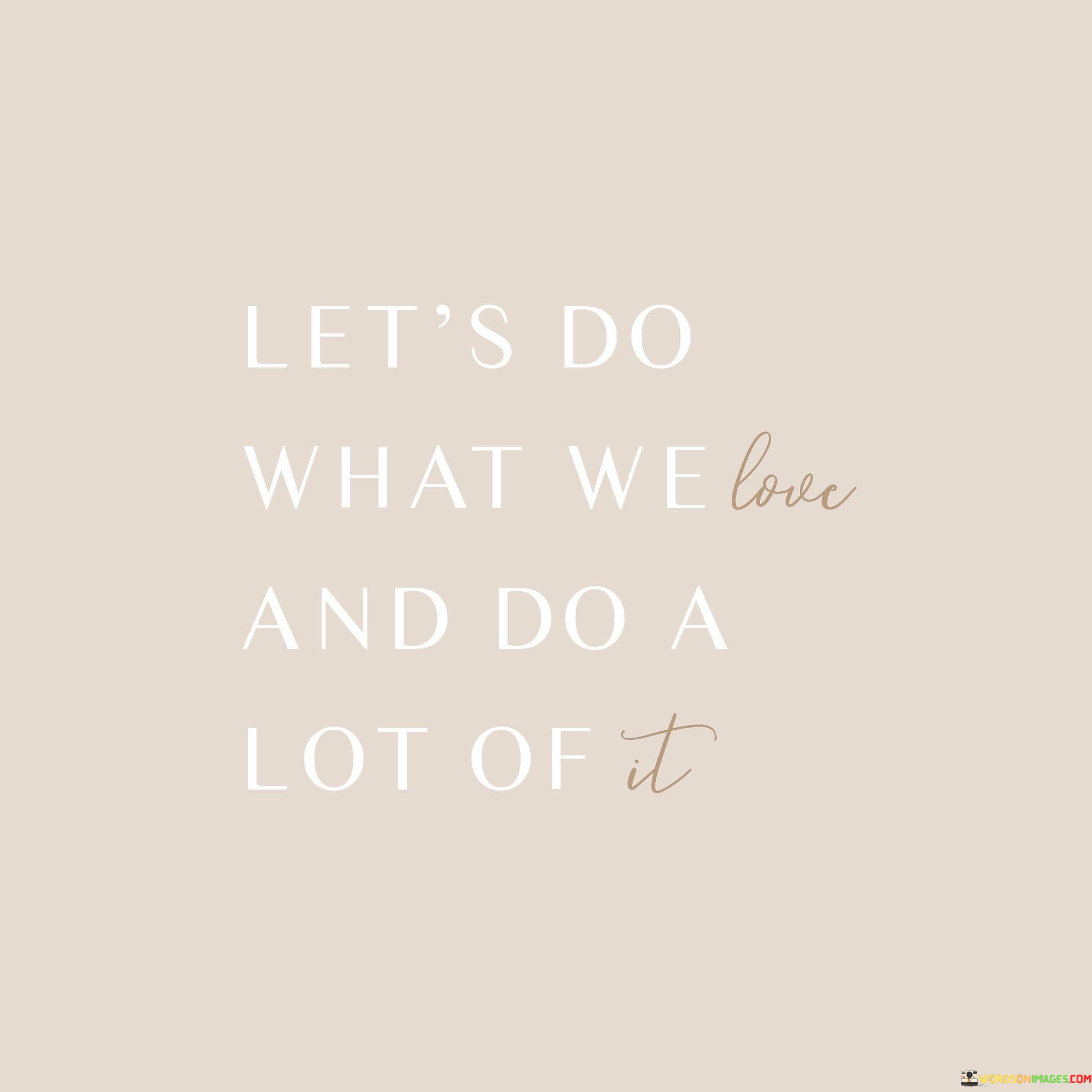 When it says, "Let's do what we love and do a lot of it," it emphasizes the importance of following our passions and interests. Instead of getting caught up in activities that don't genuinely resonate with us, it advises us to focus on what truly makes us happy.