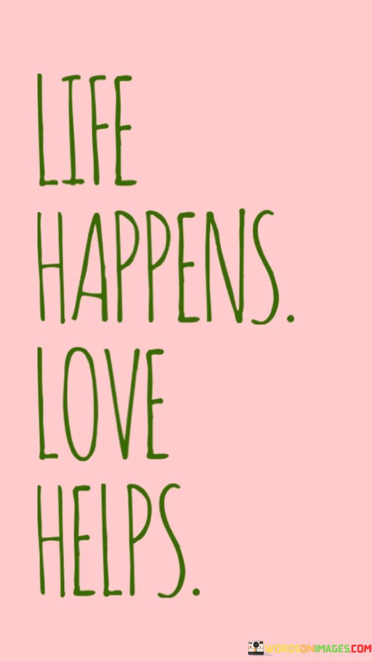 In essence, "Life Happens Love Helps" encapsulates the idea that love is a powerful force that aids us in navigating the unpredictable nature of life. It underscores the importance of cherishing and nurturing the love we have for others and the love they have for us. This love provides solace, resilience, and a sense of purpose as we navigate the complex path of existence.
