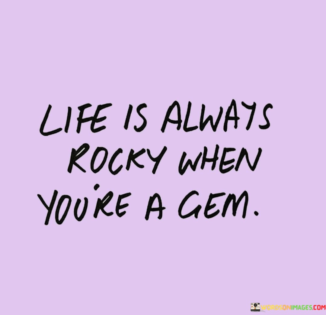 This quote uses a metaphor to convey an inspiring message about the challenges and uniqueness of individuals who are considered special or exceptional, likening them to gems. It suggests that life can be filled with difficulties when you possess exceptional qualities or talents.