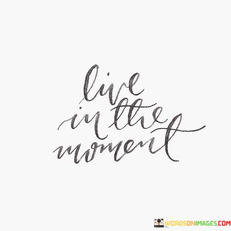The quote "Live in the moment" emphasizes the importance of being fully present and engaged in the present rather than dwelling on the past or worrying about the future. It encourages us to embrace the here and now, appreciating the beauty and experiences of each moment as they come.